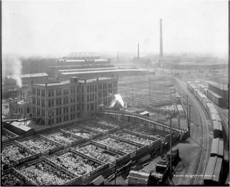 The original section of the Livestock Exchange Building, around 1900.