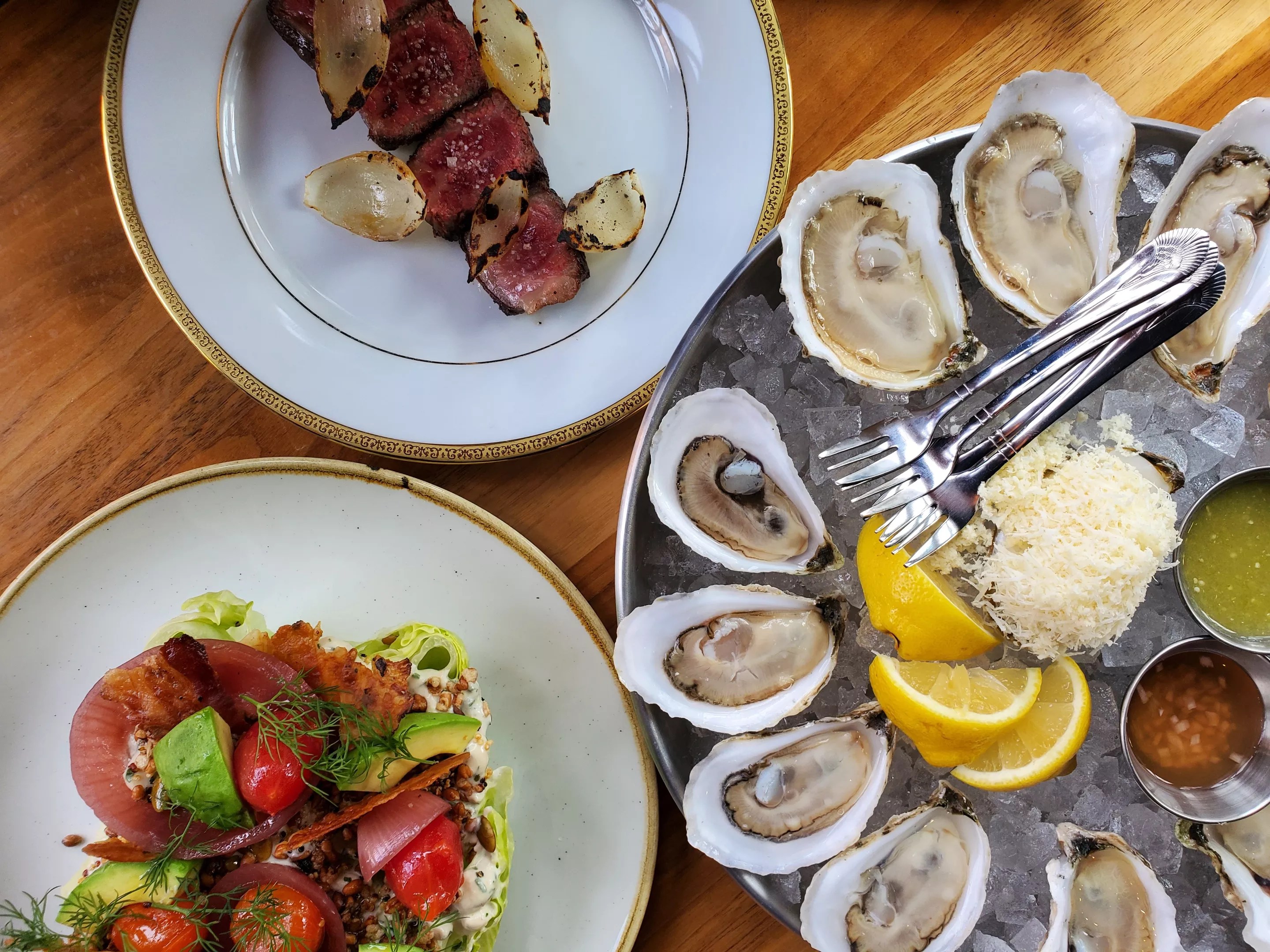 The A5 Wagyu strip, oysters and the wedge salad are all great options for starting your meal at A5.