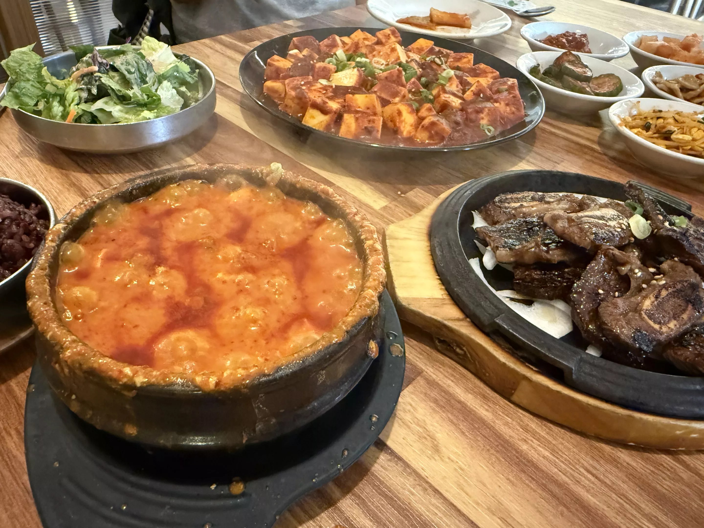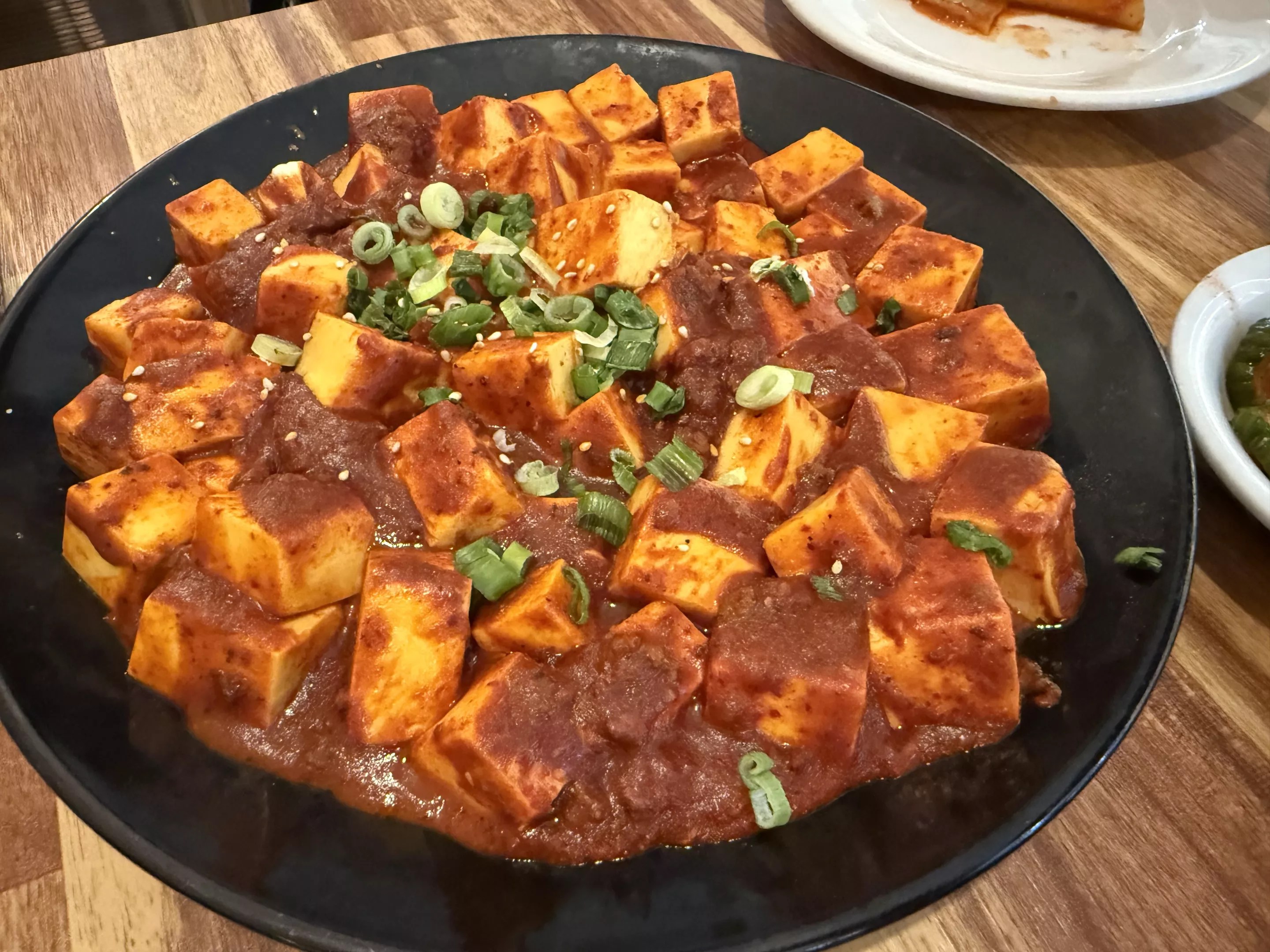 There are also plenty of non-tofu focused sides, including scallion pancakes, a wonderful rice cake tteokbokki, japchae noodles, fried fish and a variety of mandu (dumplings). And, of course, each order comes with an impressive array of Korean side dishes (banchan).