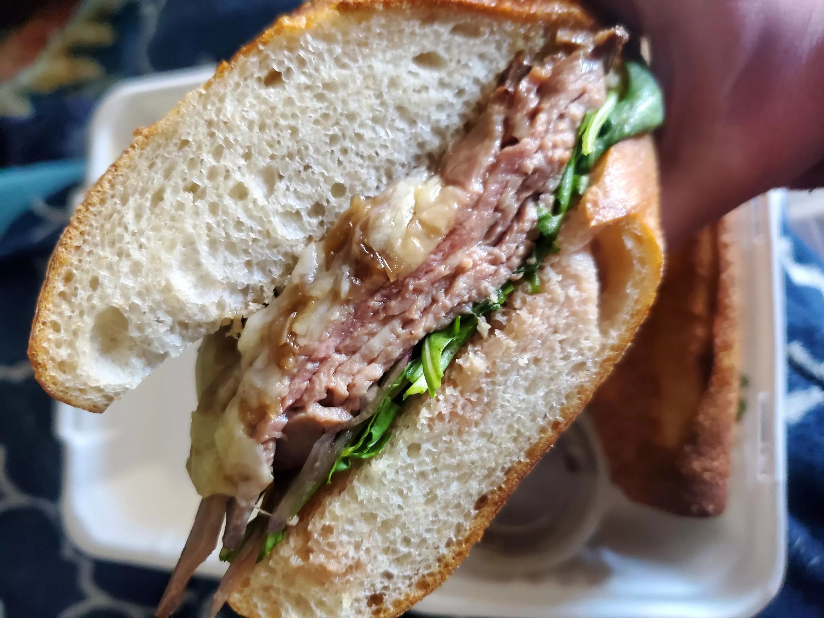 With locations in LoHi and Capitol Hill, Mr. Lucky’s has been serving a wide variety of sandwiches in Denver for over two decades. Not much has changed as far as style and offerings – even the prices remain on the lower end compared to other local sandwich shops. This means you can get a French dip starting at $6.25 for a half, or $11.75 for a whole. The dip proves simple, with roast beef and provolone nestled into a crusty baguette. The jus and creamy horseradish are on the side, packaged to-go.