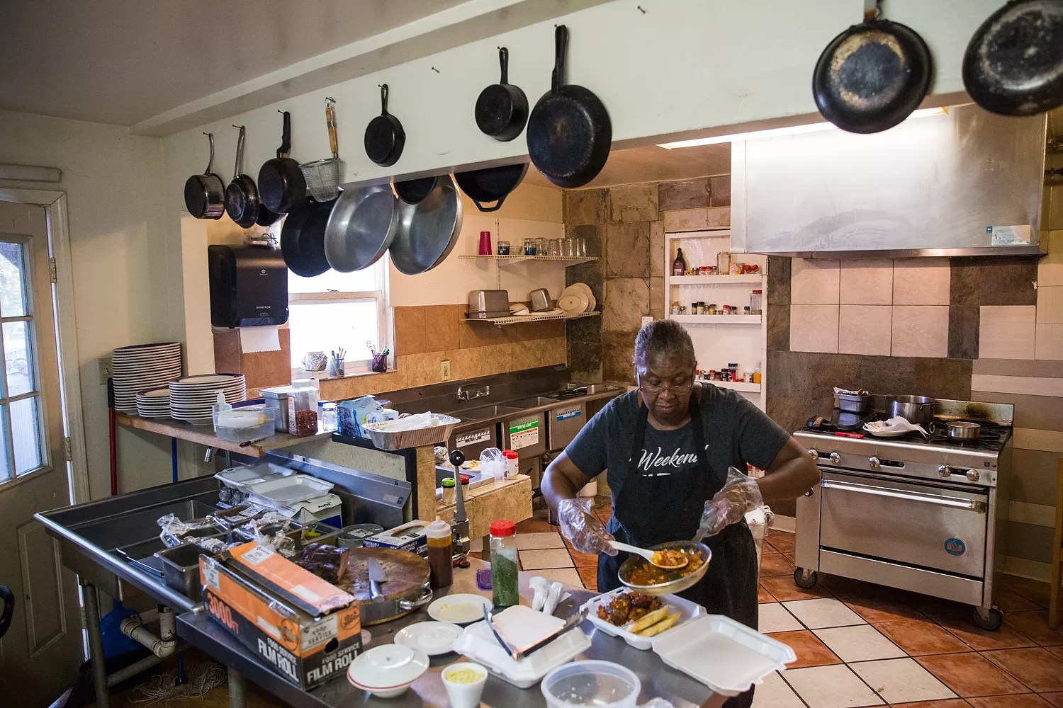 Louella Brooks prepares a Cajun order in the Brooks Smokehouse kitchen. This photo was taken just three weeks before the accident. See more photos here.