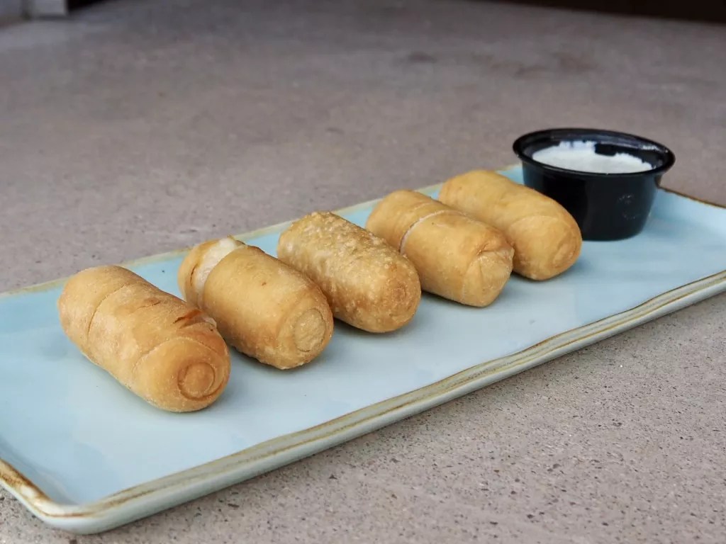 The four core dishes are tequeños (think Venezuelan cheese sticks) and cachapas (griddled sweet corn pancakes), as well as empanadas and arepas, which both come with a choice of proteins such as shredded chicken, beef, fish and Impossible ground meat. Manuel predicts that the tequeños will be the customer favorites, especially the dessert version stuffed with Nutella. (Our favorite was the Caribeña empanada stuffed with shredded mahi mahi, onions and peppers.)