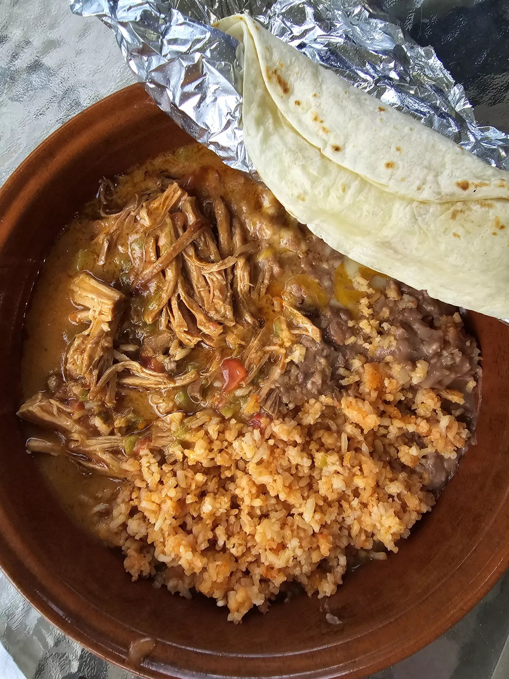 Since 1995, this small, family-owned eatery has been serving some of the city’s best Mexican eats from a location that sits like an island bordered on all sides by roads. The green chile has a distinctly roasty flavor and a sneaky heat that builds with each bite – which we suspect comes from the small flakes of red chile throughout. The bowl that comes with the chile verde plate is studded with small chunks of pork and makes a hearty meal on its own.