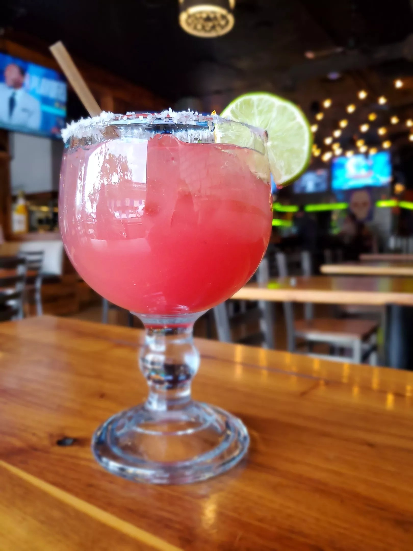 The menu has some other intriguing dishes alongside wings, nachos and tacos, including two items featuring birria, the traditional Mexican slow-cooked meat that’s been having a real moment since trending on social media. At Stoney’s Cantina, you can try it as birria ramen or queso birria tacos. There’s also a Sonoran dog with bacon aioli and pickled cactus chow chow, as well as an entire section of tlayudas, a Oaxacan specialty that the menu describes as “Stoney’s style wood-oven 12″ tortilla pizzas” (so that wood-burning oven does get some use!) topped with ingredients like grilled chicken, chorizo, carnitas and even huitlacoche, the fungus that sometimes grows on corn and is often referred to as Mexican truffle.