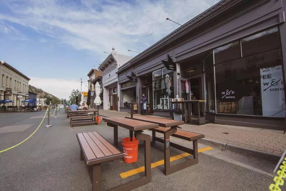 In Idaho Springs, the city closed one of its main drags, Miner Street, to traffic. As a result, Westbound & Down and the Buffalo Restaurant next door expanded their tables out into the roadway. Westbound also has a general store next door serving coffee. Beer recommendation: Western Conference All-Stars.