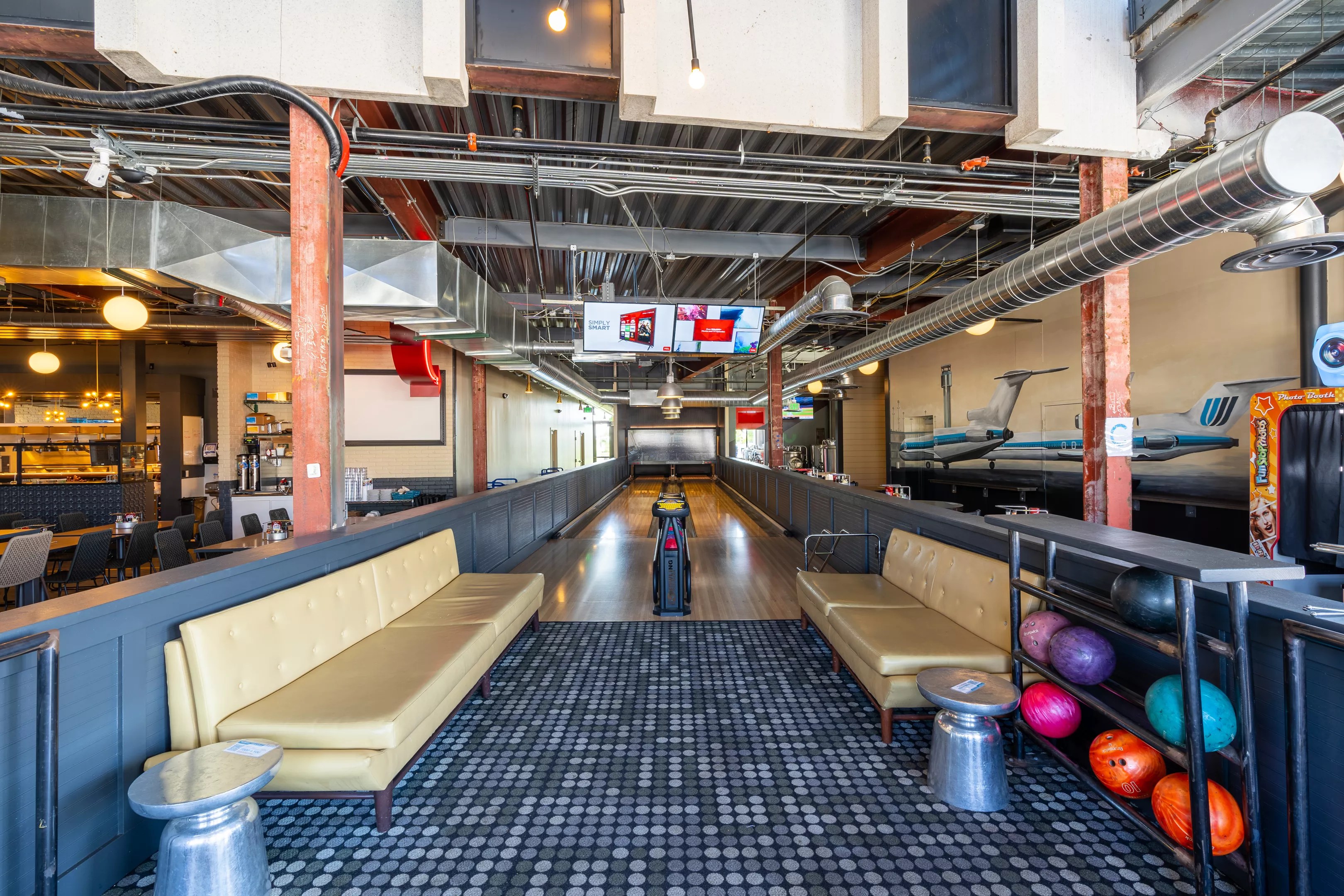 A pair of bowling lanes on the main floor.