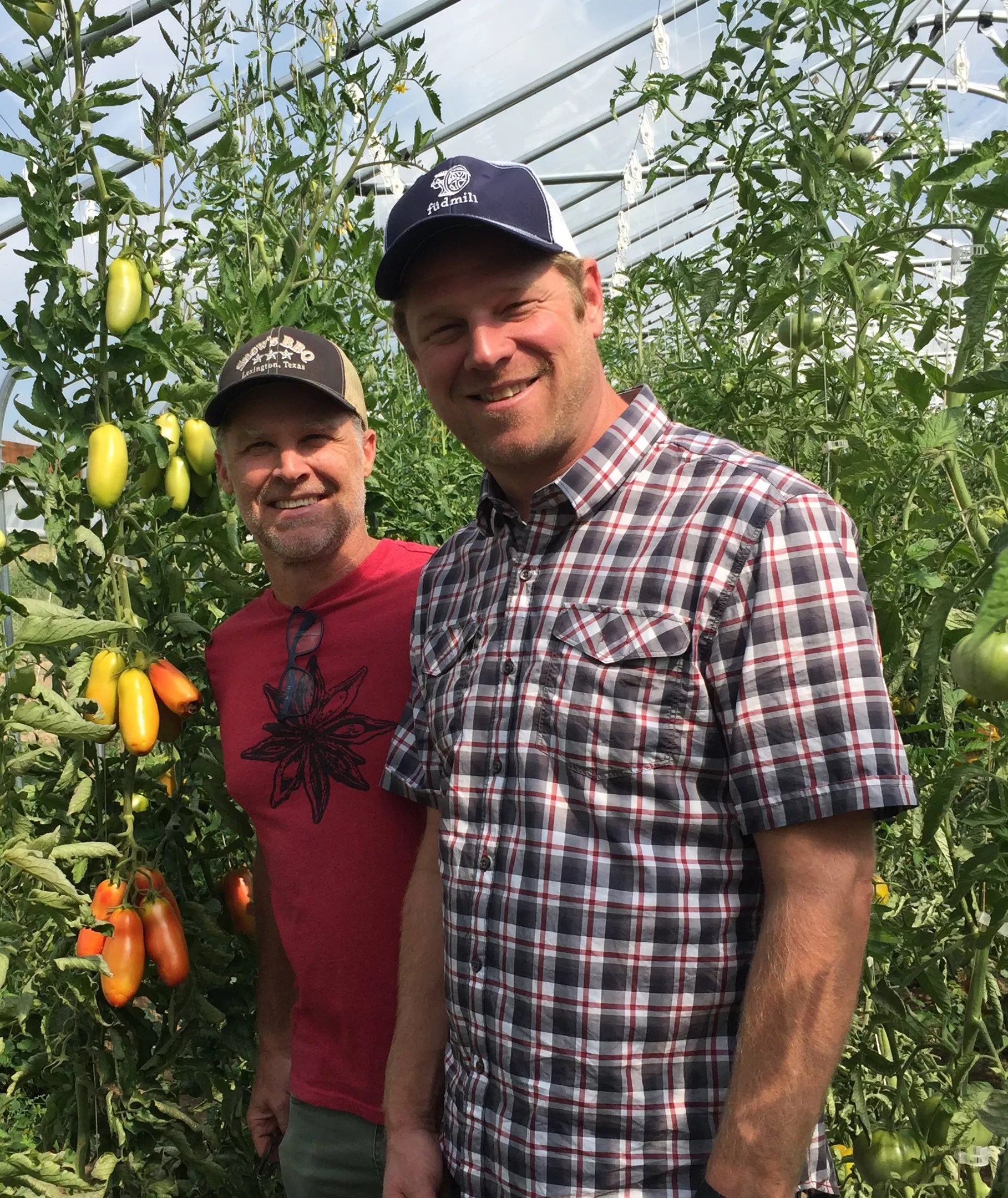 Alex Seidel (right) and Savory Spice owner Mike Johnston at Fruition Farm.