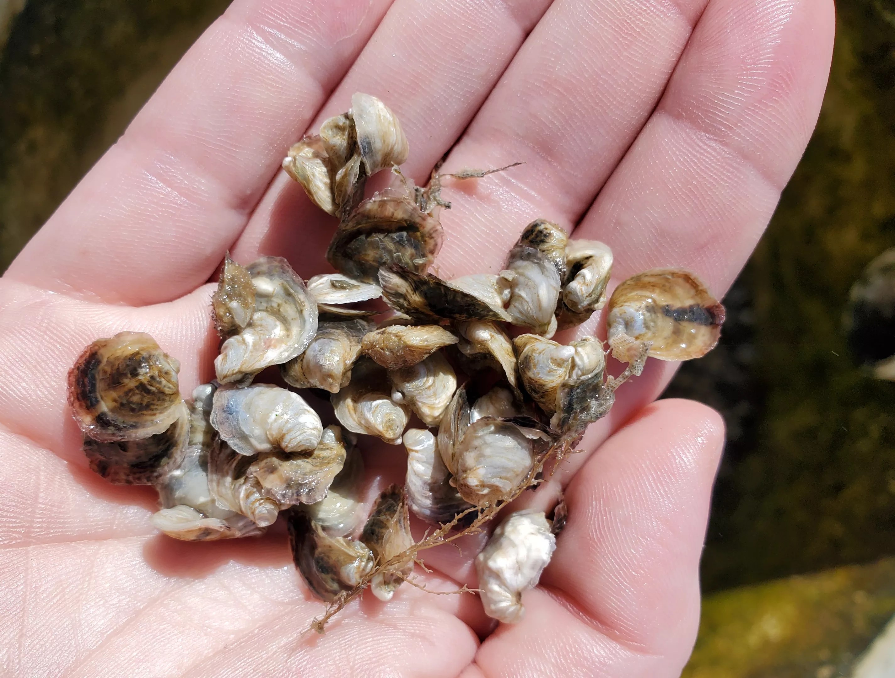 Oyster seed, or baby oysters, are kept on the dock before going out to the farm.