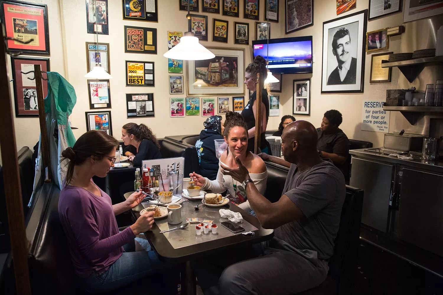 Contos arrived in Denver from Greece in 1955, and by the early 1960s he had saved enough money, working his way up from dishwasher, to open his own place. Starting with Pete’s Satire Lounge in 1962, he added Pete’s Gyros Place, Pete’s Greek Town Cafe and a Greek nightclub and an ice cream and coffee shop that are now closed. He also spread beyond Colfax with Pete’s Central One and Pete’s University Cafe further south in Denver, and in 1988 bought Pete’s Kitchen, perhaps now his most recognizable fixture, next door to the Satire, taking over a diner that had originally opened in 1942.