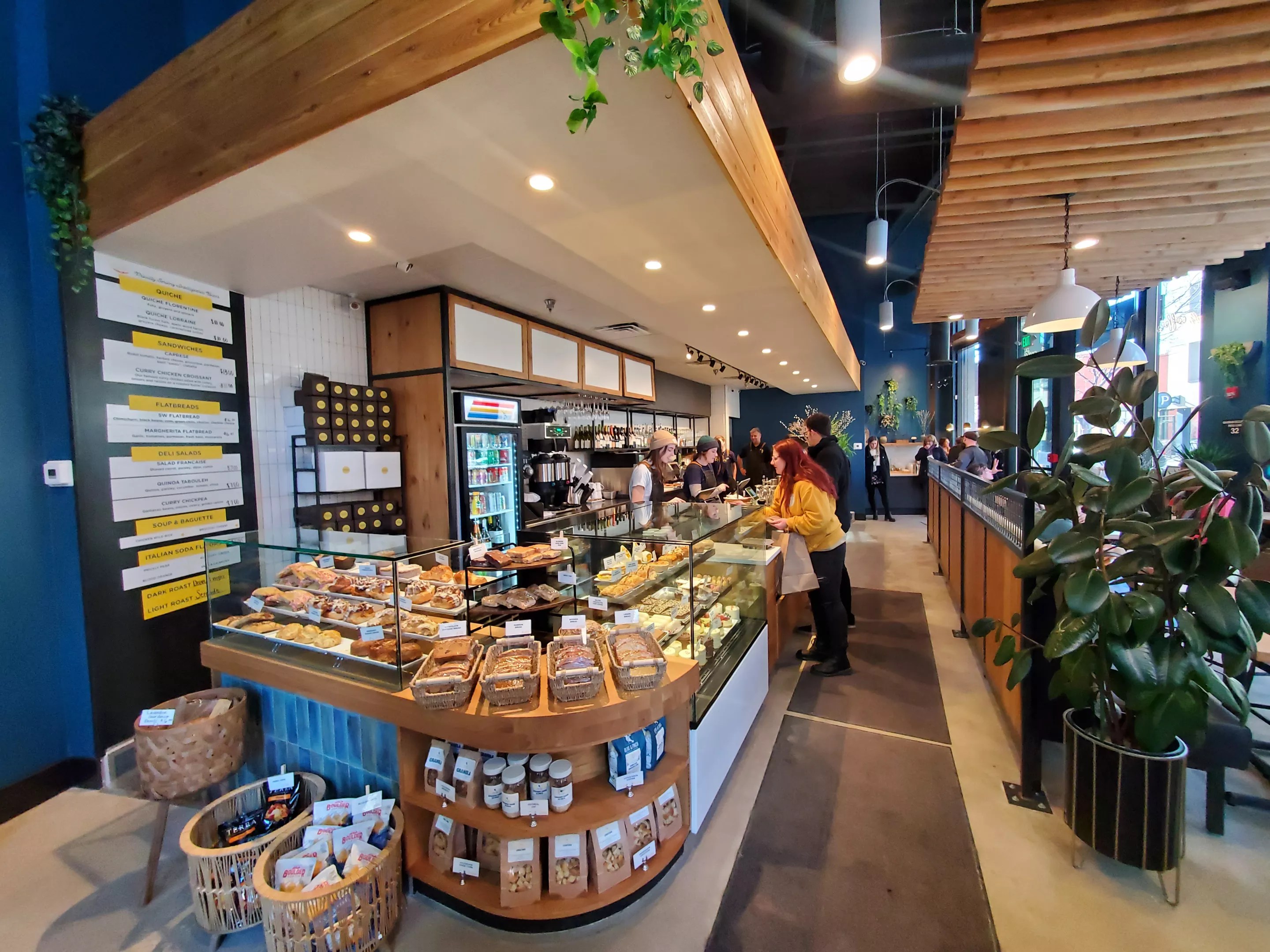 There’s a refrigerated grab-and-go section – and in another full-circle career moment, Nguyen adds that those items will soon also be available at Denver International Airport. If you want to settle in for a bit longer, though, there’s a menu board of items that are heated up in-house, including rotating flatbreads (the Southwest flavor is one of Nguyen’s current favorites). You’ll also find seasonal salads and sandwiches, all priced affordably, like the hearty portion of curry chickpeas served with a City Bakery baguette for just $7.