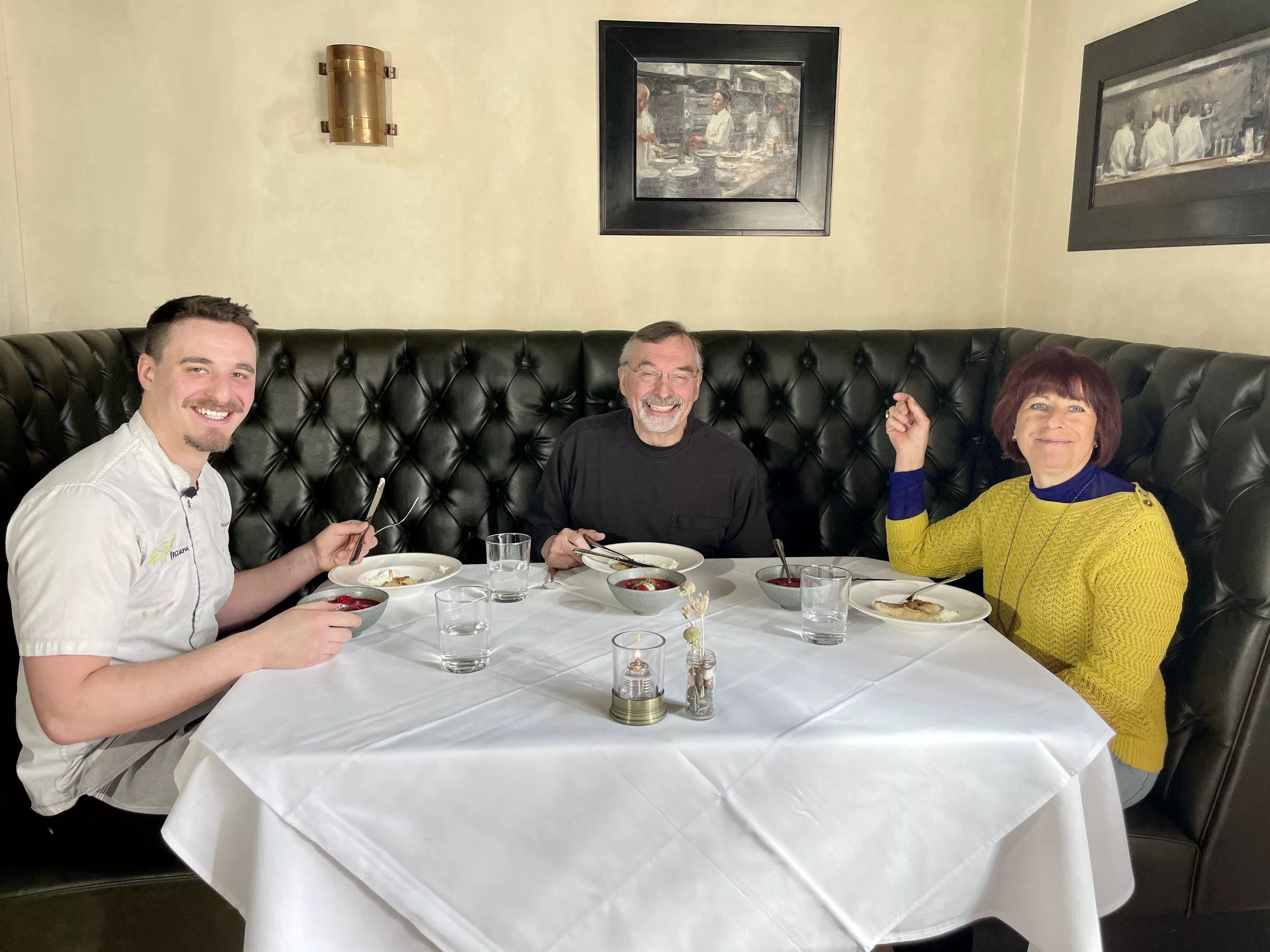 Executive chef Adam Samokishyn with his father, Michael Alexander, and mother, Marlene.