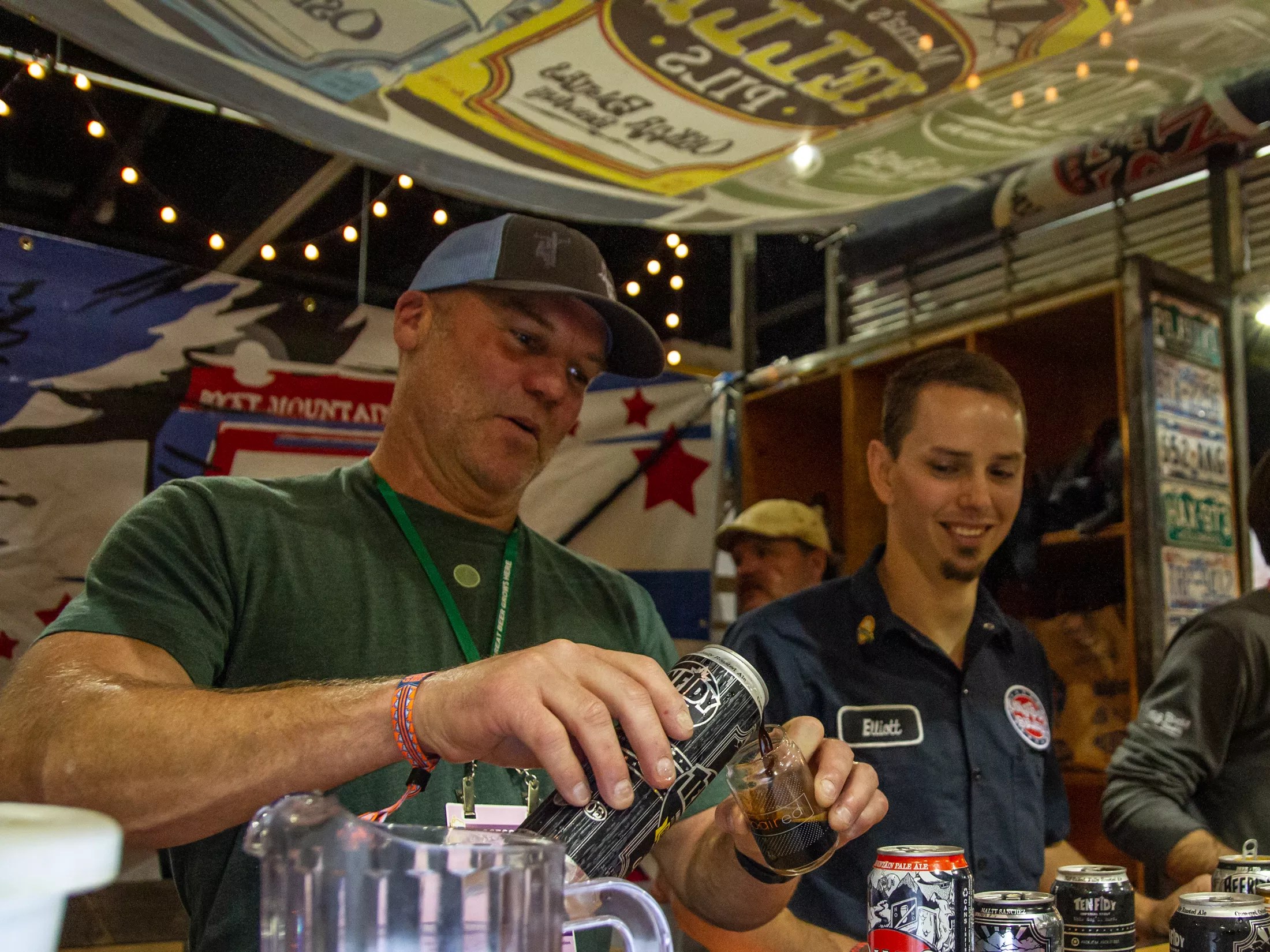 Dale Katechis (left) pours beer at GABF in 2017.