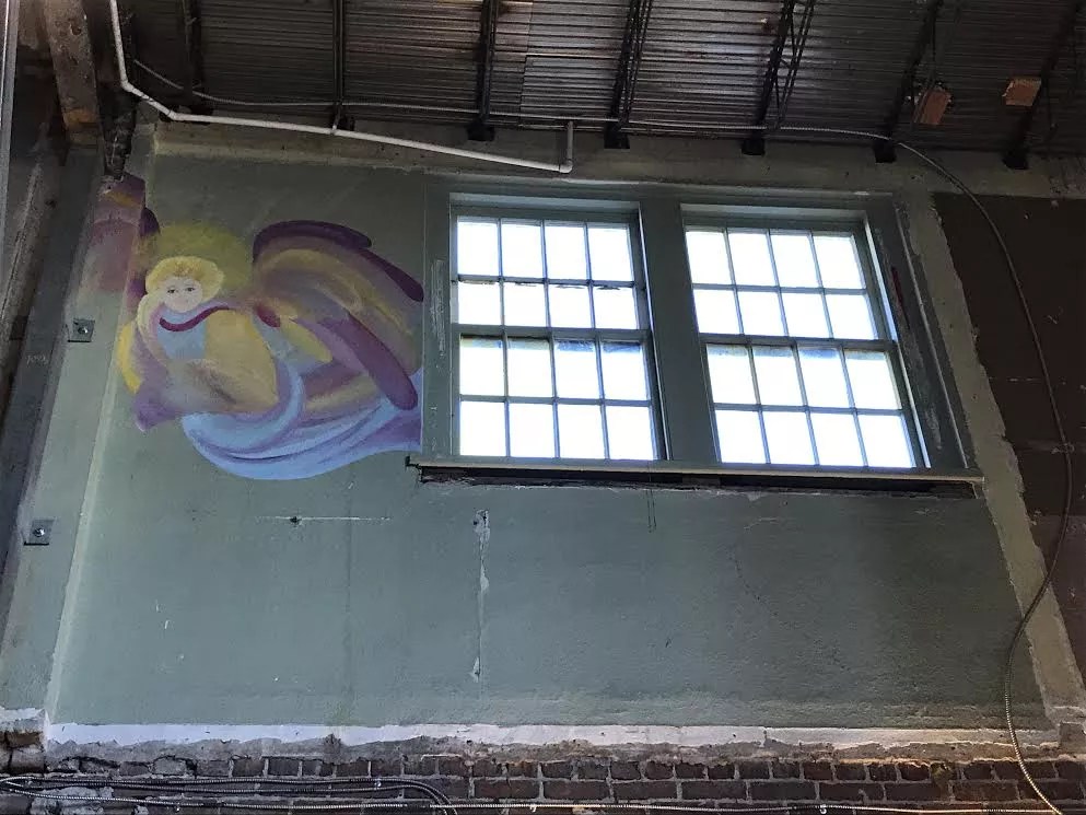 After several contentious rounds of fighting – including a lawsuit – involving neighbors, the city council, the developer and historic preservationists, the city voted in 2014 to preserve the church as a historic landmark. A five-story complex was eventually built next to the church, and a new developer incorporated the old building into the project so that the two buildings are now attached. The third floor is occupied by a fitness center for apartment residents; the bottom two floors will belong to Oasis Brewing.