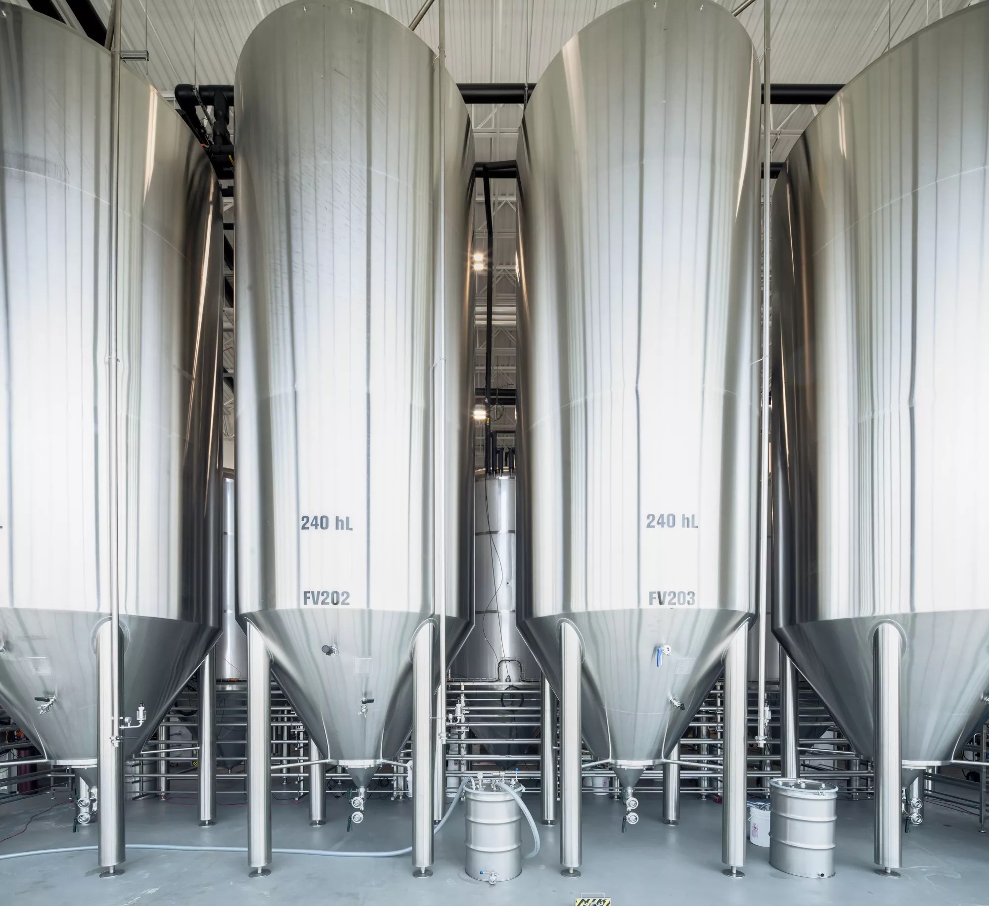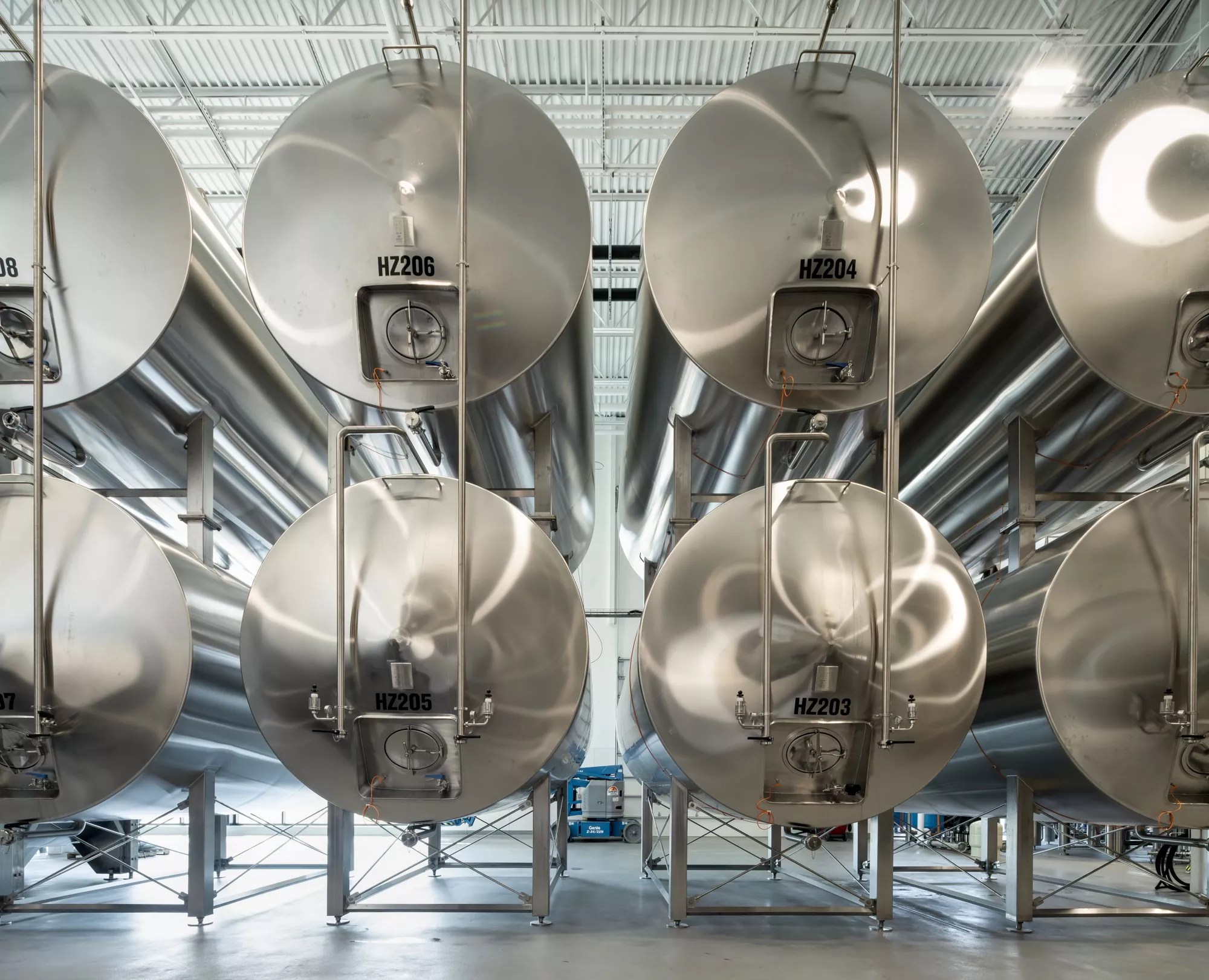 Horizontal lagering tanks at Prost reduce yeast stress.
