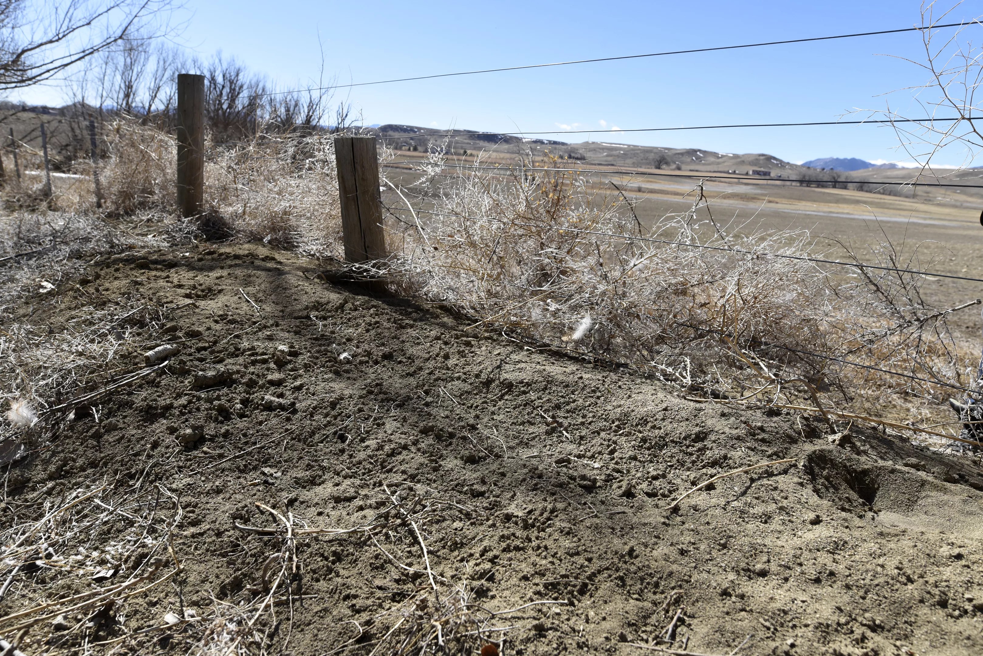 A December windstorm piled dirt alongside Marcus McCauley’s fence.