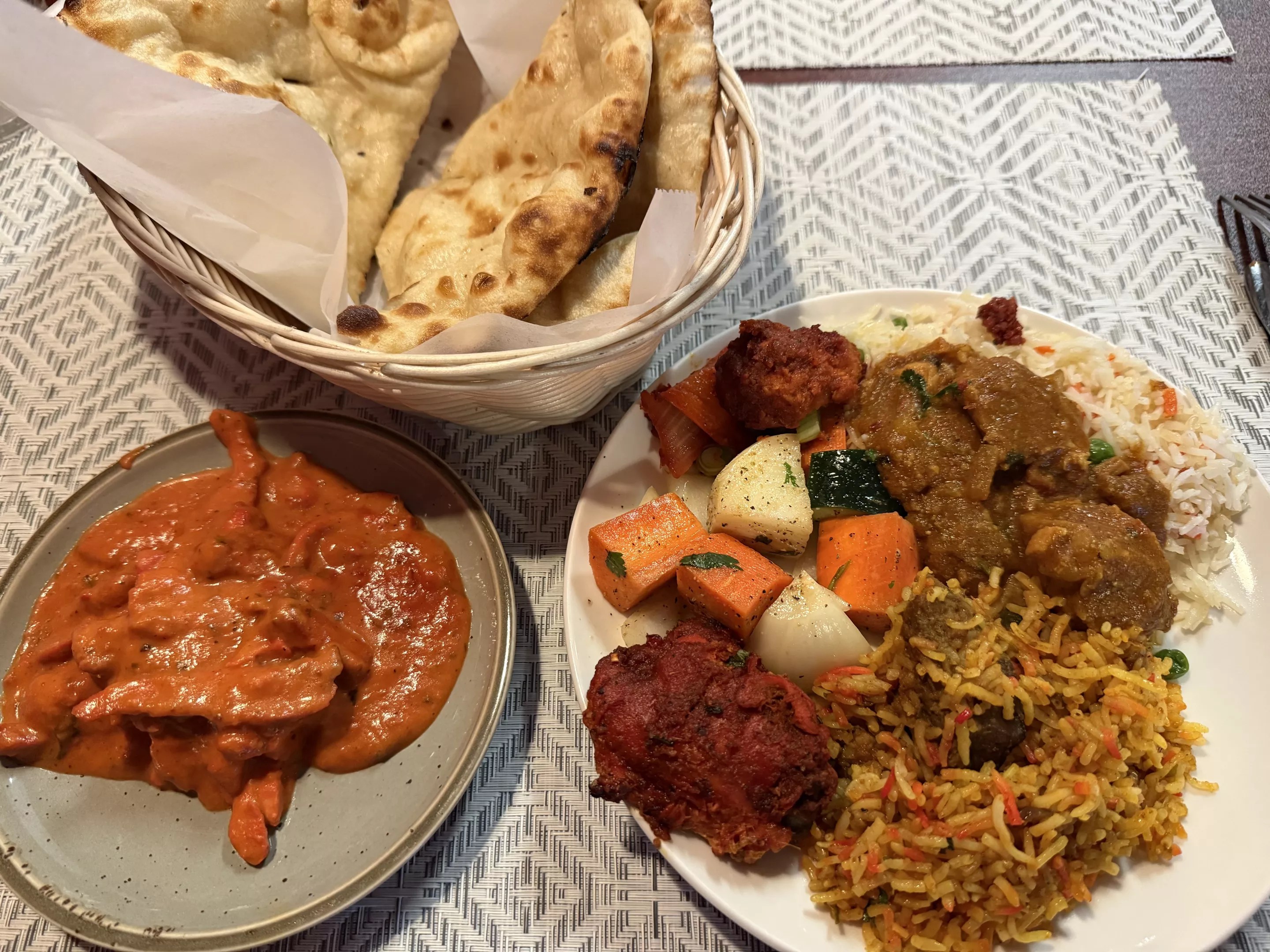 But there’s also a nod to southern Indian fare, like lentil-based daals, biryani and whole page on the menu dedicated to what it calls “Indo-Chinese” options, which includes a series of chow mein and fried rice dishes. And of course…french fries.