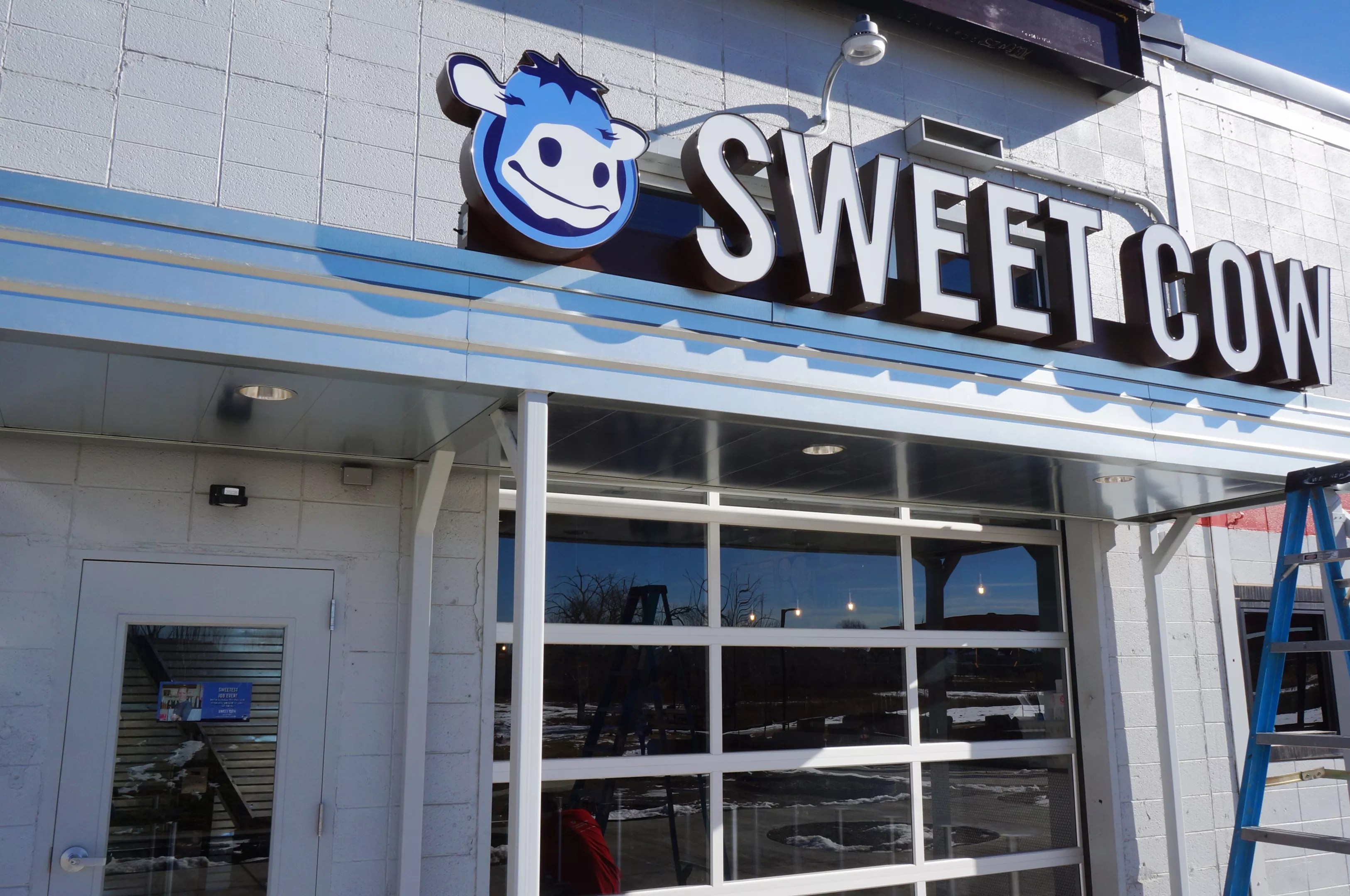 Finishing touches are being added to the exterior of Sweet Cow before Tuesday’s opening.