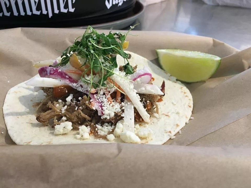 The menu at Smiley’s reads a little different than that of most smokehouses. Rather than ordering piles of meats and sides, guests can choose from smoked chicken, pulled pork or brisket served as tacos or sandwiches built on Hawaiian slider buns. There’s also a vegetarian option made with grilled zucchini, summer squash and mushrooms with housemade cactus salsa, pepitas and cotija cheese.