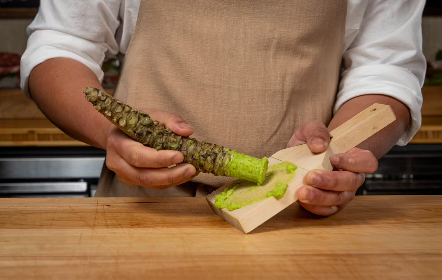 Nearly everything is made in-house, such as freshly grated wasabi root, seen here.