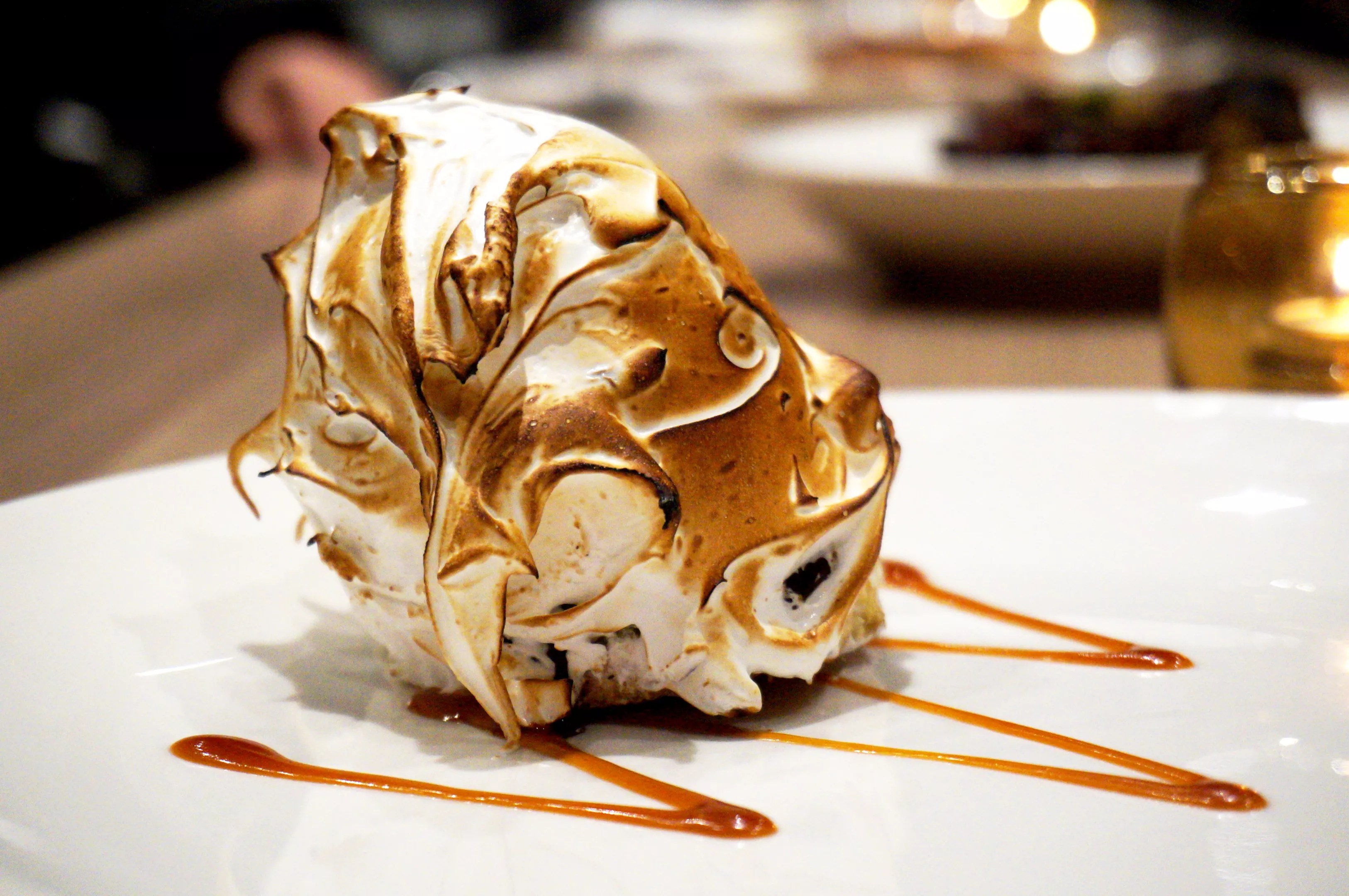 Instead of Baked Alaska, the Bindery serves Baked Colorado. The toasted meringue shell hides tres leches cake, dulce de leche ice cream and chocolate.
