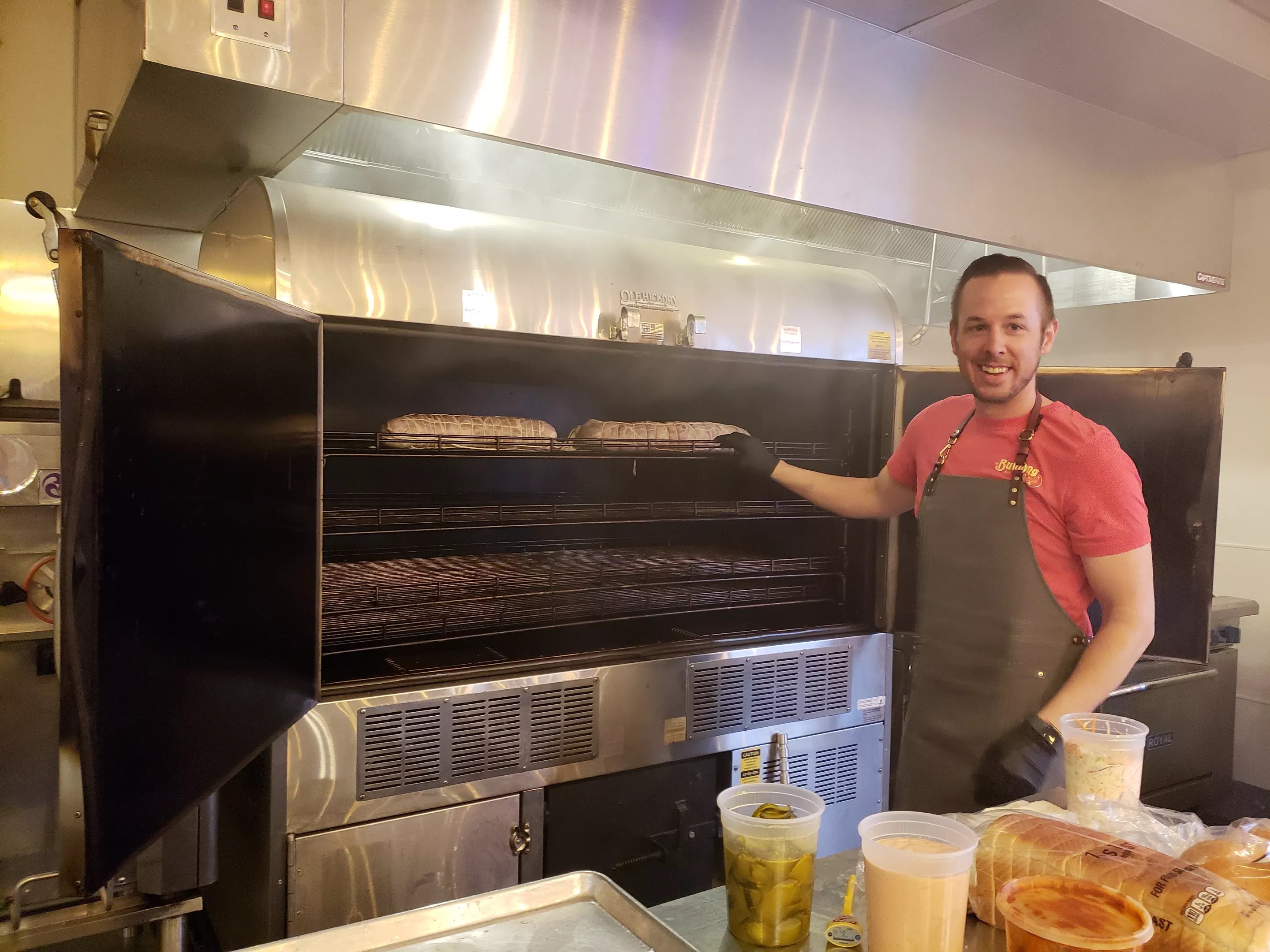 Owner Jared Leonard in front of his smoker.
