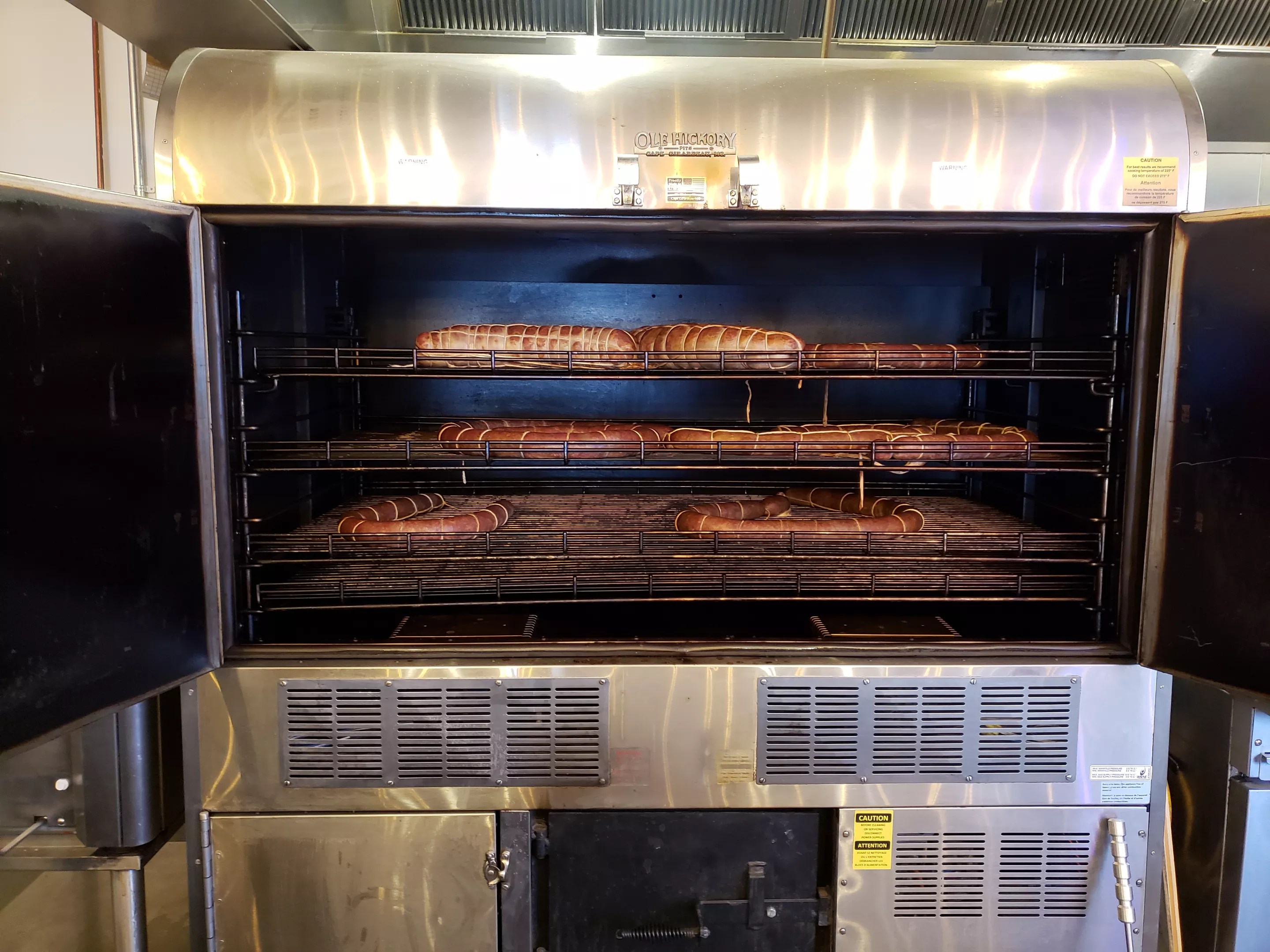 The sausage-filled smoker at BBQ Supply Co.