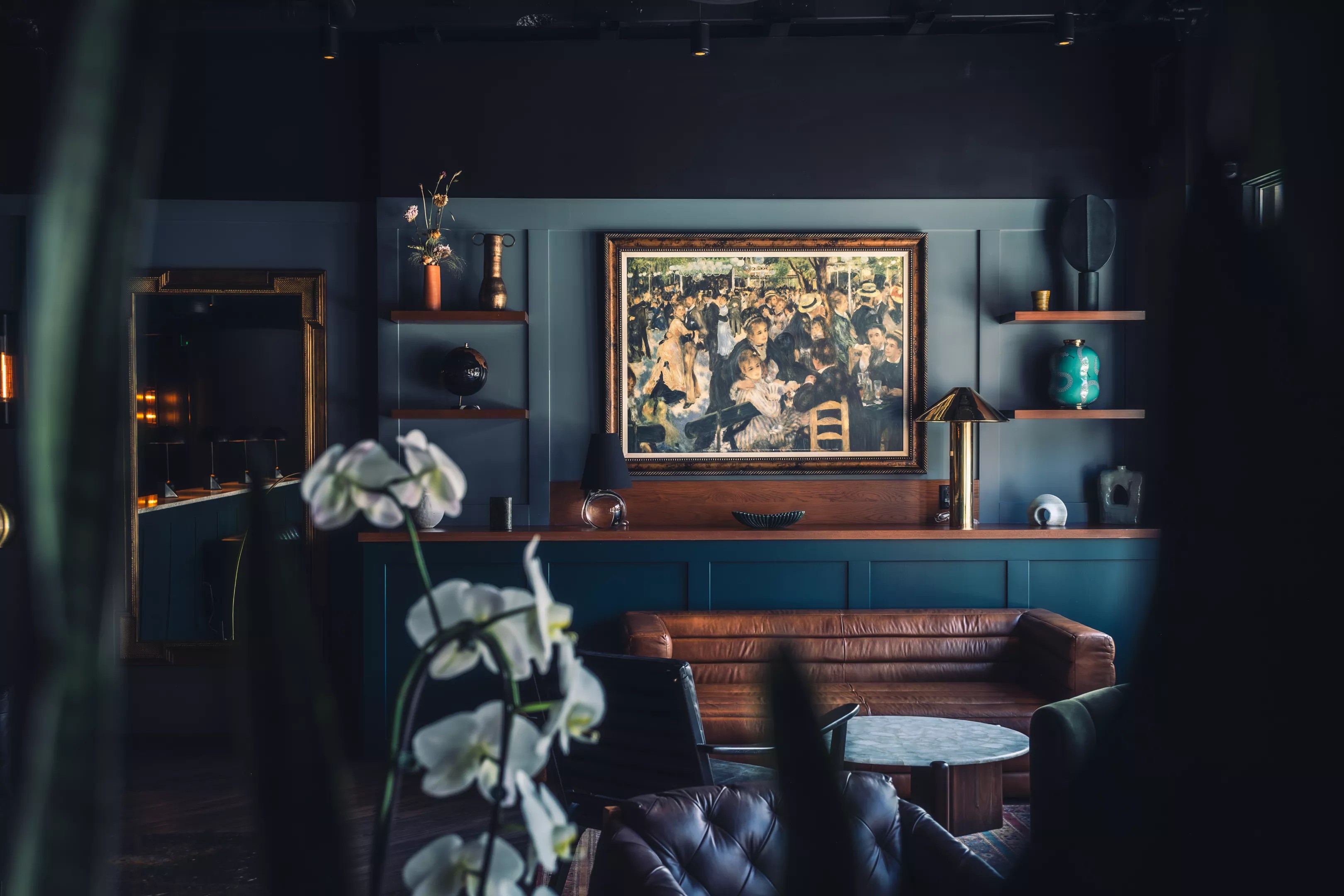 The 6,800-square-foot spot, which was last home to Irish pub Maloney’s Tavern, had been vacant for several years before Younggreen and De Souza found it. They embarked on an extensive renovation project to transform the old Victorian storefront into a space that’s dark and moody, yet with comfortable vibes. There’s a sofa-filled lounge and bar in front, a dining room at the far end, and a fireplace tying the two halves together; connected areas will soon host the Guest and El Mercado. “It was a much longer and more expensive project than we originally anticipated, but at the end of the day, we got something way more special and unique than we ever could have gotten just going into another space, so it was worth it,” Younggreen says.