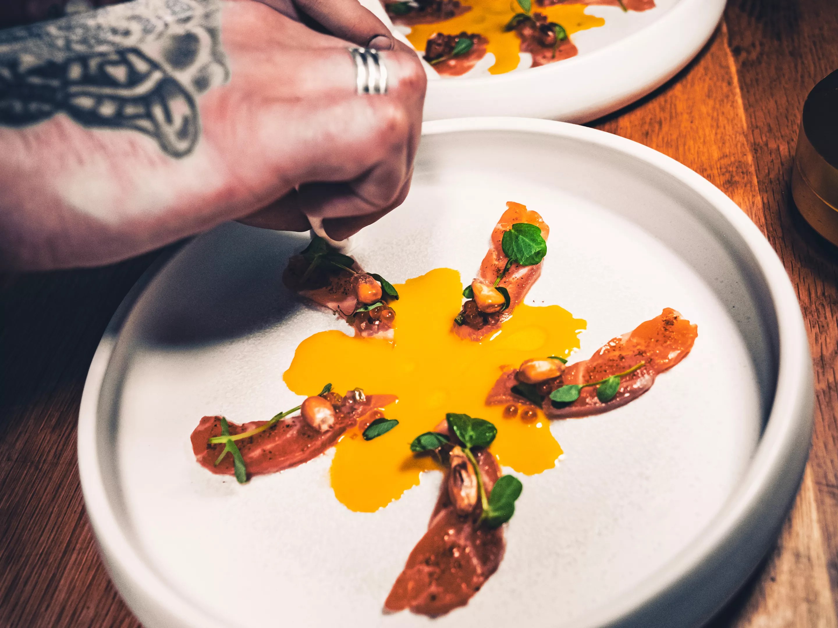 In creating the menu, De Souza, who was born in Peru but has lived all over the world – everywhere from Spain and Switzerland to China, Russia and London – follows his passion wherever it may take him, without boundaries. “I can’t – not because I don’t want to – but I can’t be in a box,” he says. “Naturally, I’m going to break it at some point. So what food do I do? Whatever I want. What food do I like the most? Everything. That helps me to keep pushing forward. Instead of, like, ‘This is what I’m gonna do, so this is the route I’m going to find’ – I’m not going to do that. I’m going to go to the road, and if I want to go left, I go left. If I want to go right, I go right. If I want to go back, I go back.”