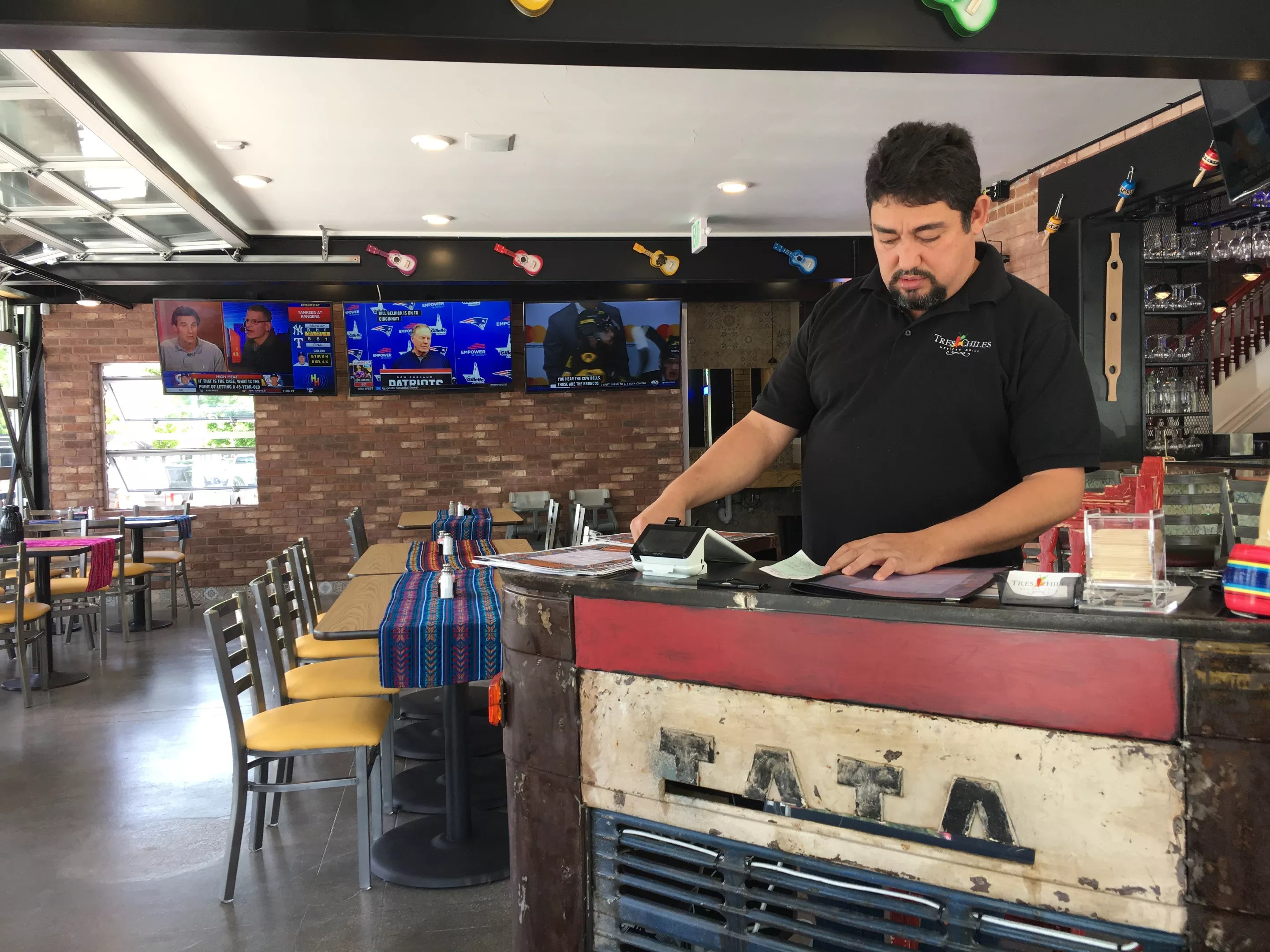 Tres Chiles doesn’t have a patio, but the entire dining room opens up when the weather is nice.