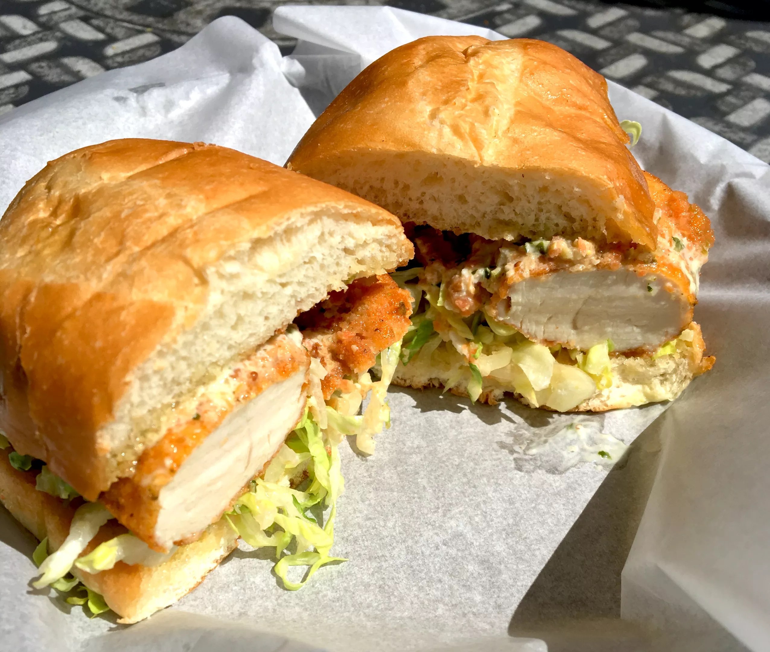 The hot chicken sandwich at Zeps Epiq Sandwiches.