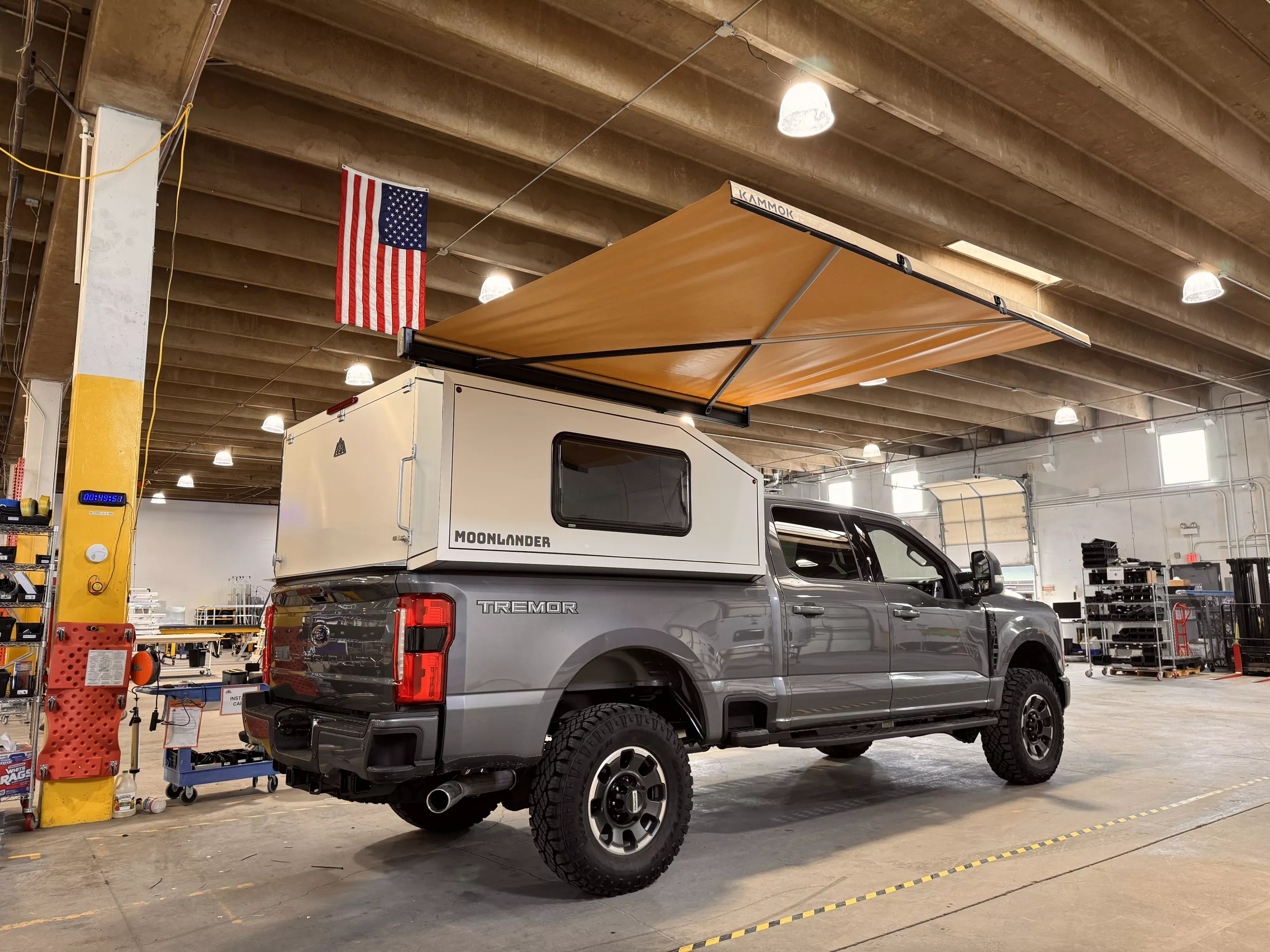 The first of its kind. A hybrid between a topper and an expedition rig. MoonLander is extended on both sides, allowing you to sleep sideways over the truck bed.